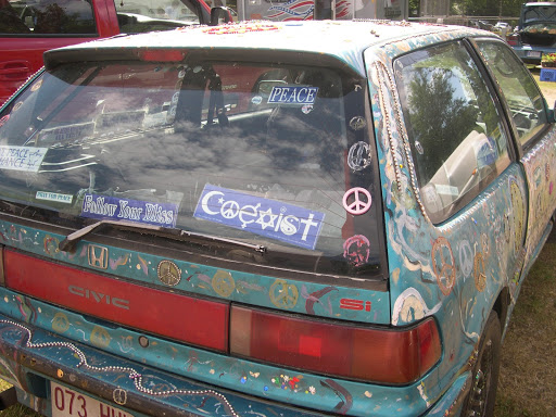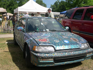 As we walked further into the vendor area I found this wonderful Peace car! It was painted with Peace signs and paisley designs. It was even embellished with pearls…including pearls of wisdom in the form of signs and bumper stickers. How cool is this?