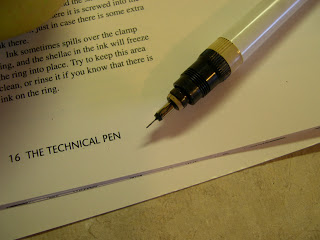 I will always go to great lengths to save a buck or two if the end result gets me what I want. The first photo shows how dirty the pen points were. The book it is laying on is “The Technical Pen” by Gary Simmons. I didn’t know when I bought this book at our Salvation Army [new condition] that it is the bible for technical pens. I paid $3 for the book and I saw it on amazon for $55-$150. My mom always said I could fall into a pile horse manure and come out smelling like a rose.