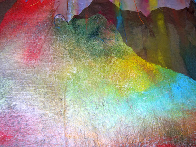 We put drop cloths down, cut some large pieces off, got out the paints and away we went. I love the way some of the texture comes through the paint.