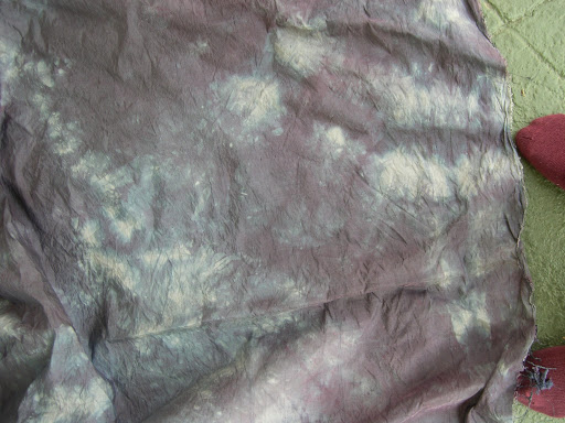 The next piece I used was a pale tan piece of dupioni silk. That is shown in the bottom picture with my toes and at the left next to the cotton. The silk actually came out darker but I love them both.