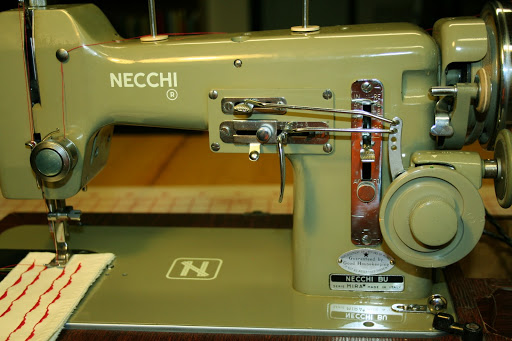 I had previously given my dad [who will be 90 yrs old this fall] my old Viking machine since it is lightweight for him to pick up. He used to make his own boat covers and upholstery so he knows how to sew. Now he just hems pants and sews up ripped seams. Well, there were too many settings and he would get the Viking hopelessly messed up. So in his basement I found my mom’s old Necchi Mira machine that he always used. I had to clean 40 yrs of gunk and oil off it and repair the bobbin winder but it works like a champ. (I had planned on bringing it home to mount in my treadle base. The machine is a depression green color and my treadle cabinet base is painted depression green..and my weaving loom is a Mira so I thought that darn Necchi was just screaming to come live at my house with all those coincidences.) Ron and I moved the Necchi Mira into my mom’s old room so it is easy for him to get to. I must say that since my mom passed away 3 years ago, that room has looked way too well kept and the addition of the machine and cabinet in there looks very much at home and puts a little life in the house. I think if my mom is looking down on him she approves.