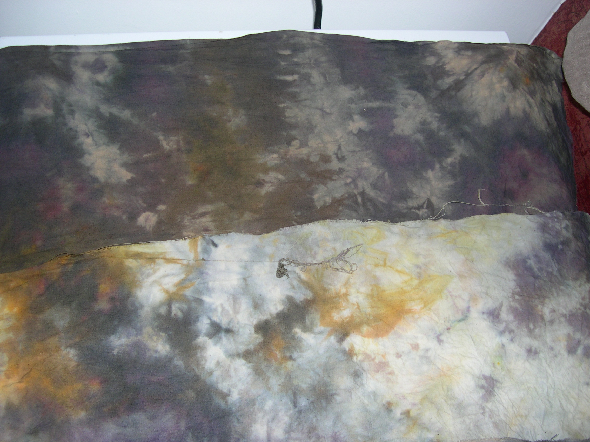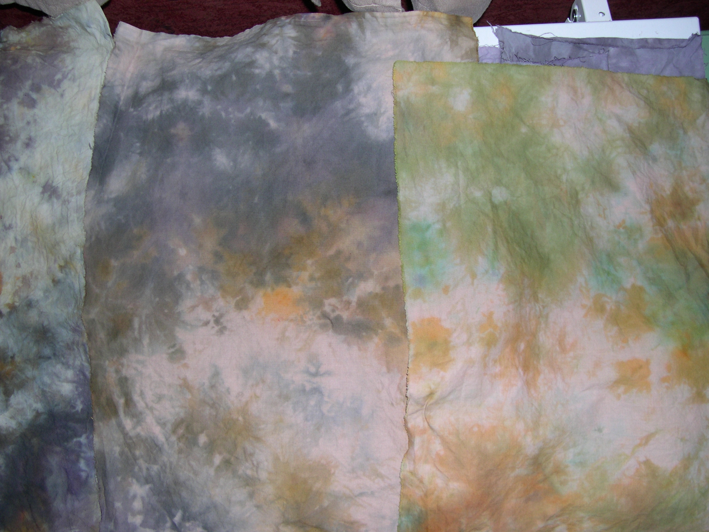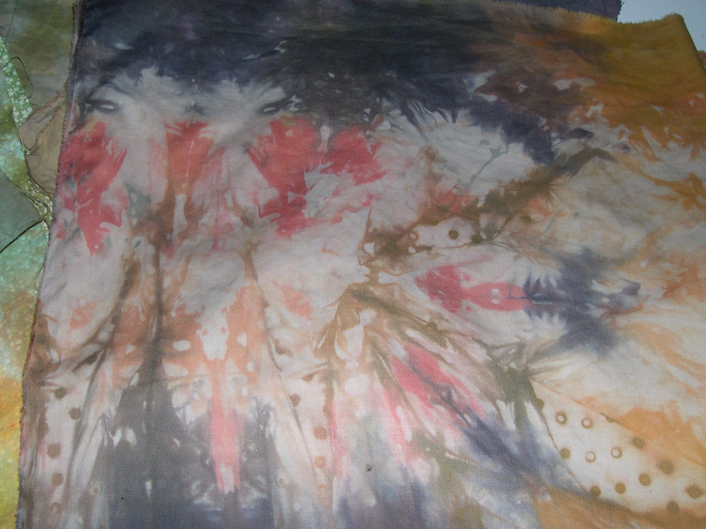Lots of pictures but few words. I used a few larger pieces of cottons and then when I saw all the dye in the bottom of the bins, I threw in scraps and bits to see what would happen. Love, love, love it. Lots of neutral shades in the catch-all pieces, bright colors in the main intended fabrics and some interesting patterning on all of it. The photos washed out some of the color with the flash. We still have a lot of snow with more on the way. Oh, and I used Rit dye in dry and liquid form. Maybe next time I’ll use MX dyes if I have time to mix up soda ash to treat it first.
