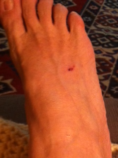 A puncture wound is one of the most painful injuries. Healing nicely and I’m wearing shoes in the studio for sure!