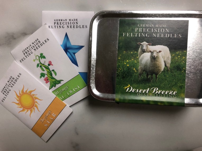 I used some of my Christmas money to purchase some high quality felting needles. I plan on using my machine for large areas and my needles for details. I have more wool coming in extra colors and I am watching some outstanding tutorials on YouTube.