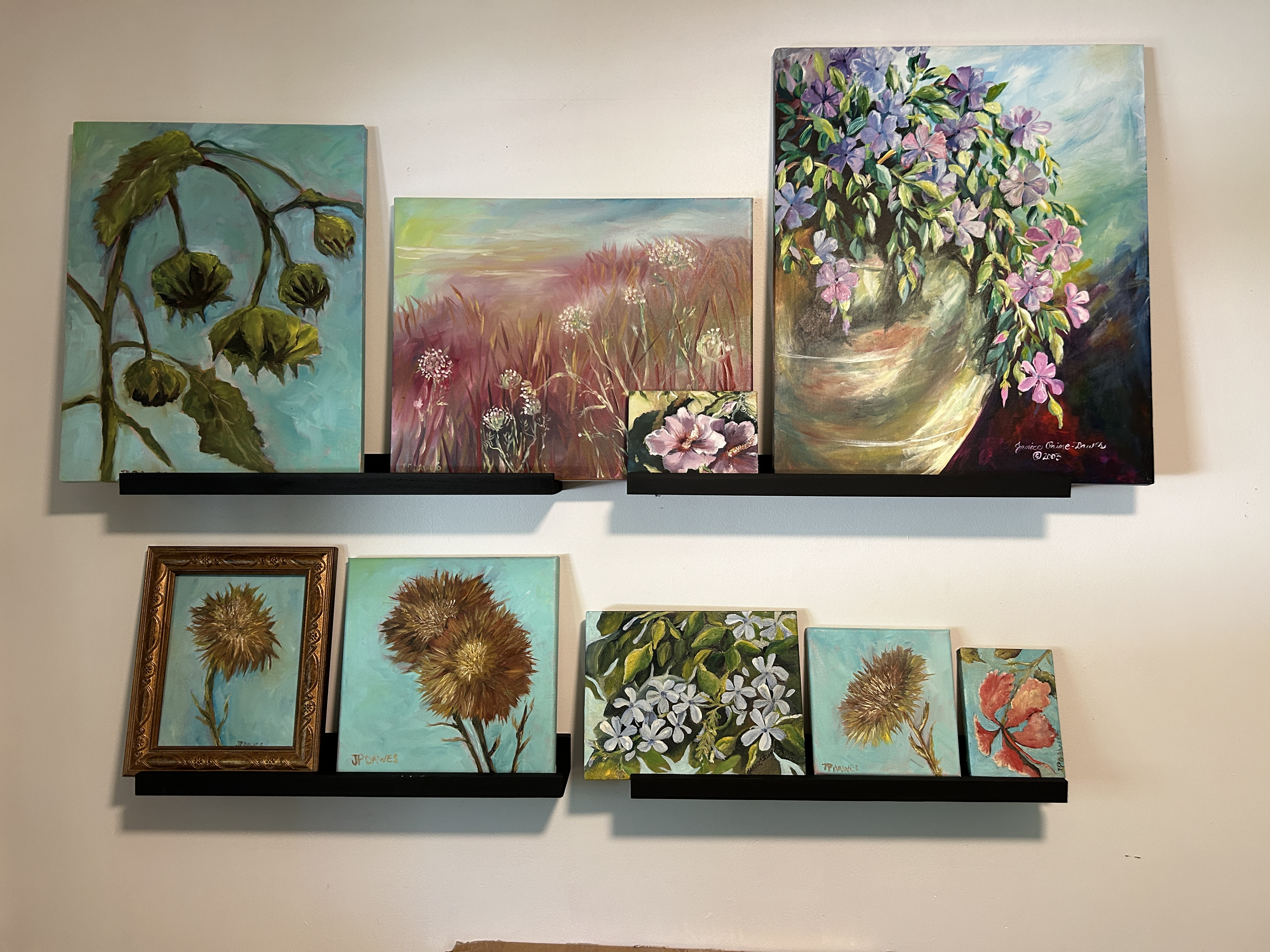 I needed shelves or ledges on my studio wall. I found these 4 new in package wooden ones at the local Goodwill store. They are a start to build on. The beauty of them is that I can display oils without knocking holes in the wall. A plus is that I can also use them for oil paintings to oil out. I will keep an eye out for a few more of these ledges.