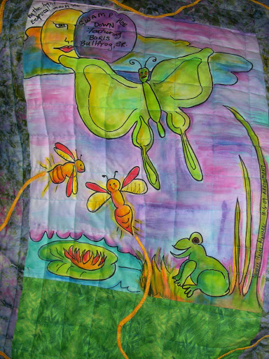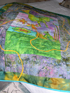 The baby’s nursery is being done in a woodland kind of motif. I haven’t seen it and I don’t know for sure how swamp creatures will fit in but I suspect the quilt will be appreciated and loved.