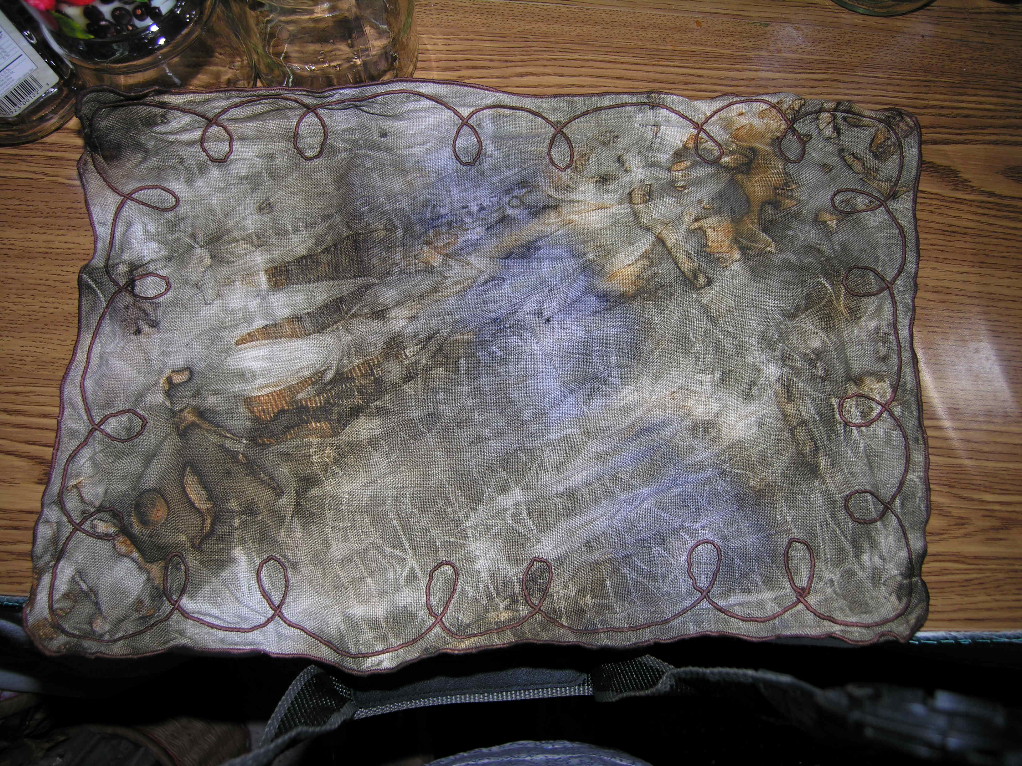 To determine content of fabrics I recommend conducting this first with fabrics that you are sure about the content of – so you will know the outcome of the test yourself. In a non reactive pan (I use a pyrex pie plate) take snips (small pieces) of the fabric you will be testing. Use straight bleach and put about ½” of bleach in the pan. Please do this in a ventilated area. Add the snippets of fabric and let them sit for about 24 hours. The next day, look at what you have left.