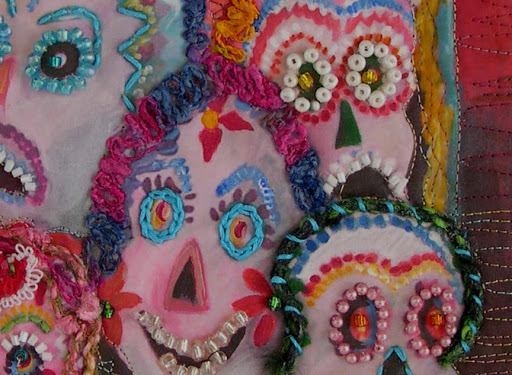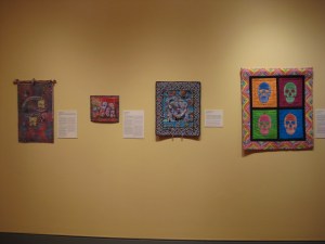These are photos of the Day of the Dead exhibit at the Everhart Museum in Scranton, PA. There was a call for pieces from the Quilt Art List so I sent a letter of inquiry with a jpg. I was pleased that it was accepted for this show. It is now on loan to them until the end of the year. Mine is the second from the left, the little one. It is called Elemental Altar If you are in the area go take a look!