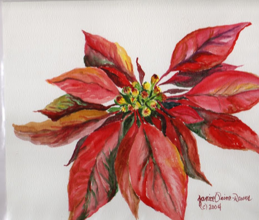 My poinsettia [Euphorbia pulcherrima] plants from Christmas died. I had 5 small ones that were red and pink. Rather than toss the dropped petals, I put them in a jar with a vinegar solution to see what would happen. I bundled a few of the petals [leaves actually] in a soda ash treated cotton cloth, rolled and bundled it and dropped it into the jar. I left it for a couple of weeks and couldn’t stand it any longer. This is what I got.