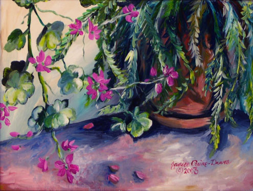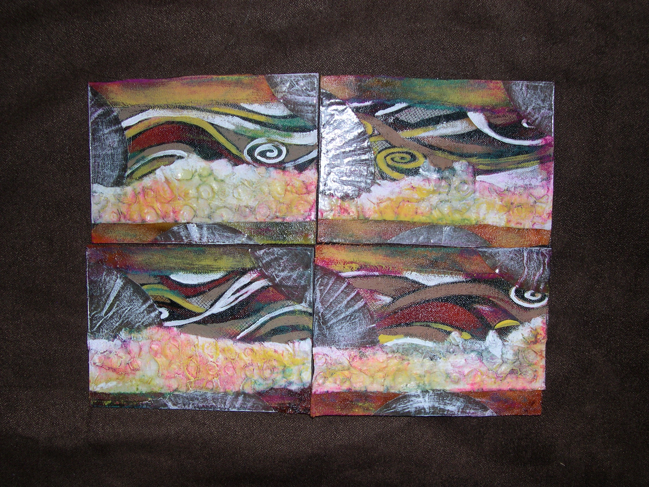 Two of my friends, Janis Doucette and Chris Predd, nominated me to share some of my art in the 5 day art challenge on Facebook. I’m going to have to think of someone to nominate next since this has been going on for awhile and many artists I know have already been nominated. So, to start off I thought I would share some of my paintings from a few years ago. This is pre-art quilting, 2003, all are acrylics on canvas. The crotons are in my home and the other two are in private collections.