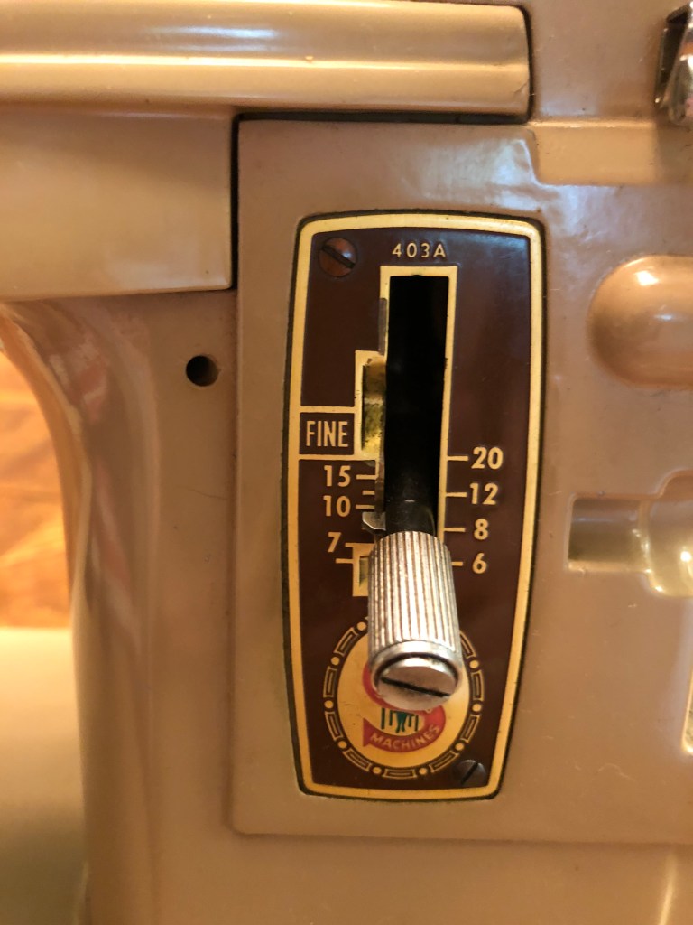 It’s the preparation that takes so much time. After the tabs are cut, I pinned the tabs to hold the D-rings in place. They are plastic to avoid rust. Next I had to burn the ends of the tabs so they don’t unravel. Now onto sewing! I located my spool of heavy upholstery poly thread for stitching and a No. 16 Jeans needle. Nothing will do this job better than my wonderful vintage Singer 403A. I moved to the dining room table since my studio is a disaster and not enough room for the awning. Can’t wait to get this on Lolo!