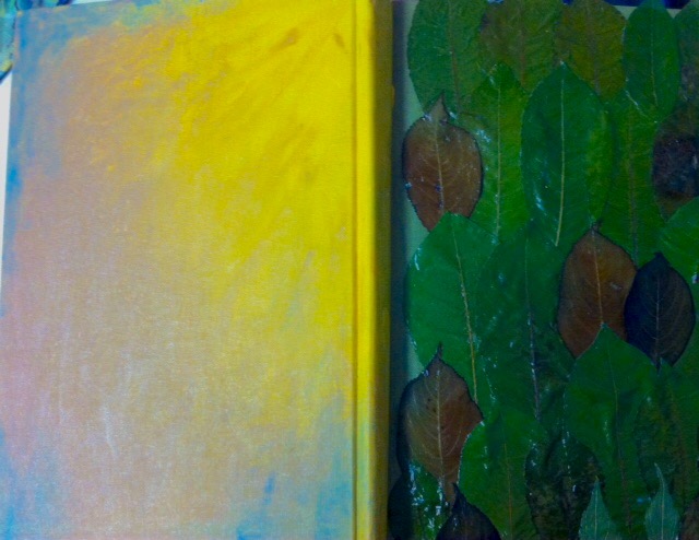 A few weeks ago I showed you some National Geographic hardcover books I was getting ready for making altered books. Today I finally had some time to start work on them. This is one I have covered the front with pussywillow and cotinus leaves and the back so far is painted. There are more altering plans for this one so I am excited to be working on it.