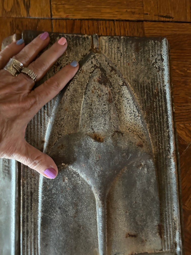 I bought these wonderful antique tin ceiling tiles from someone on Facebook Marketplace. They were just too good to pass up. Most ceiling tiles you see are squares or circle patterns, these are a little rarer. I can think of a lot of assemblage compositions using these.